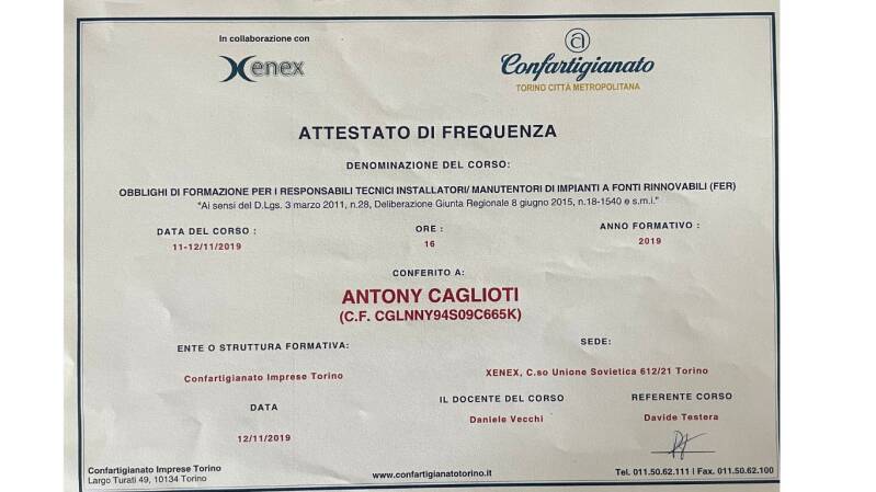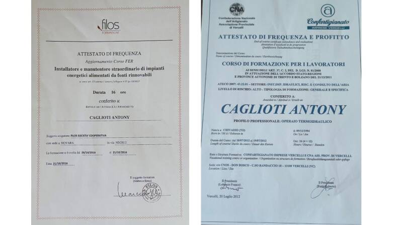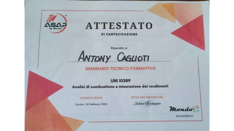 Mi chiamo Caglioti Antony, ho 30 anni, ho maturato un’esperienza solida e continuativa nel settore dell’assistenza tecnica e dell’installazione di impianti termici e di climatizzazione. Ho iniziato la mia carriera all’età di 16 anni, lavorando presso un centro specializzato in assistenza a caldaie e condizionatori, dove ho potuto apprendere sul campo tutte le competenze tecniche necessarie per operare in maniera autonoma ed efficiente.